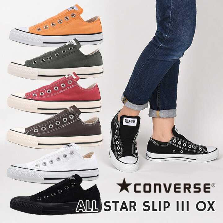 楽天市場 ポイント10倍 土日祝出荷 コンバース スリッポン スニーカー レディース メンズ 白 黒 オールスター ローカット スリッポン Converse スリップ 3 Ox カジュアル シューズ 紐無し 靴